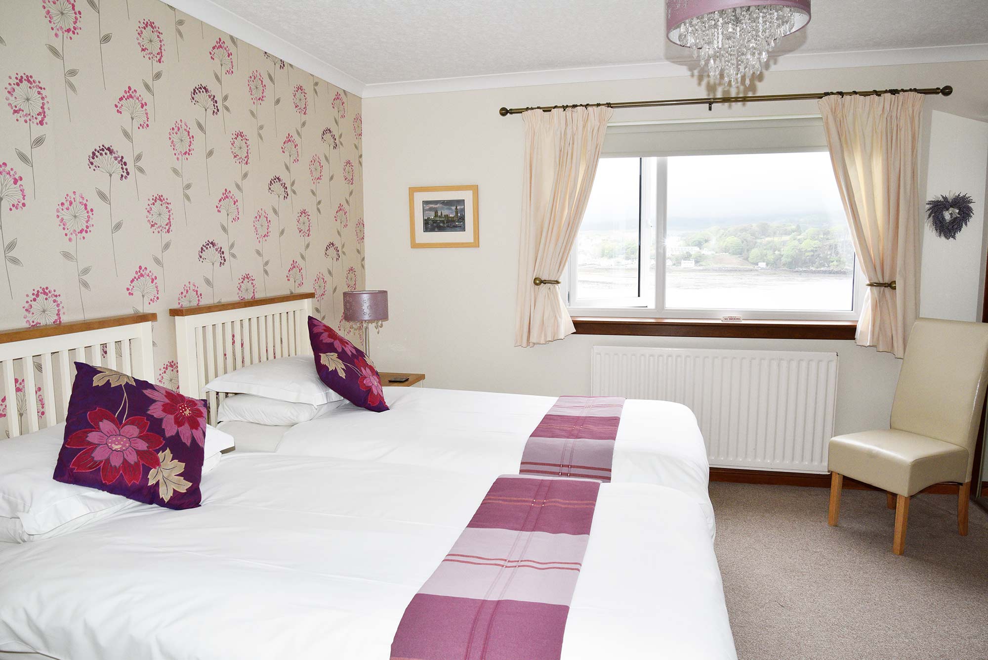 TWIN ROOMSpacious twin room accommodation in Portree on the Isle of Skye.The twin room benefits from a stunning sea view from the window over looking Portree Bay. The room is spacious with plenty of storage space for luggage. MORE ROOMS