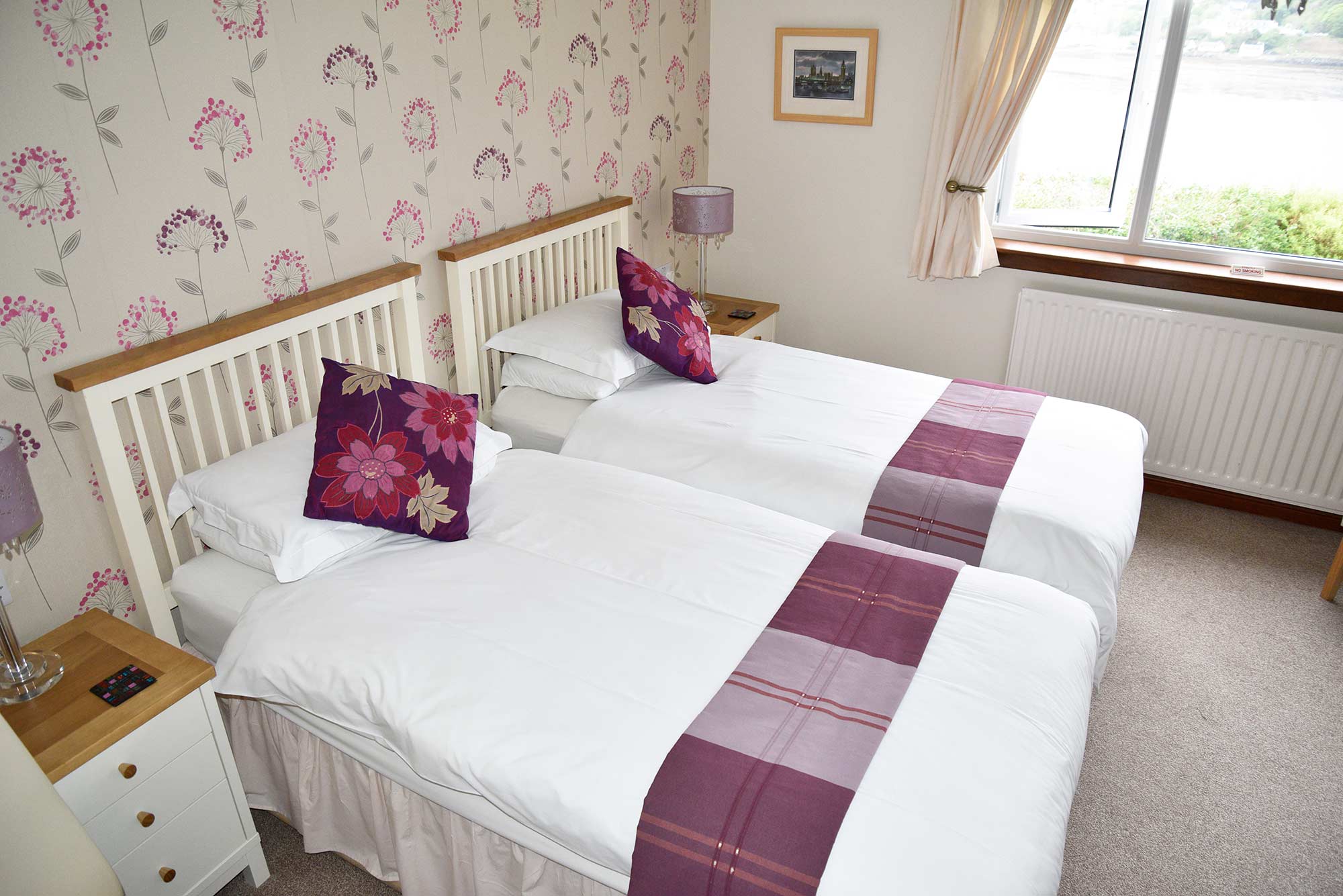TWIN ROOMSpacious twin room accommodation in Portree on the Isle of Skye.The twin room benefits from a stunning sea view from the window over looking Portree Bay. The room is spacious with plenty of storage space for luggage. MORE ROOMS